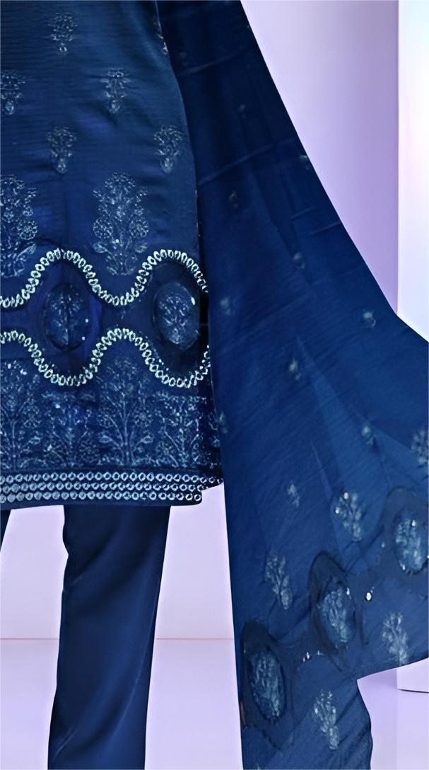 Deep blue premium Dhanak suit with elegant winter embroidery and matching dupatta from Maham Volume 354 Collection.